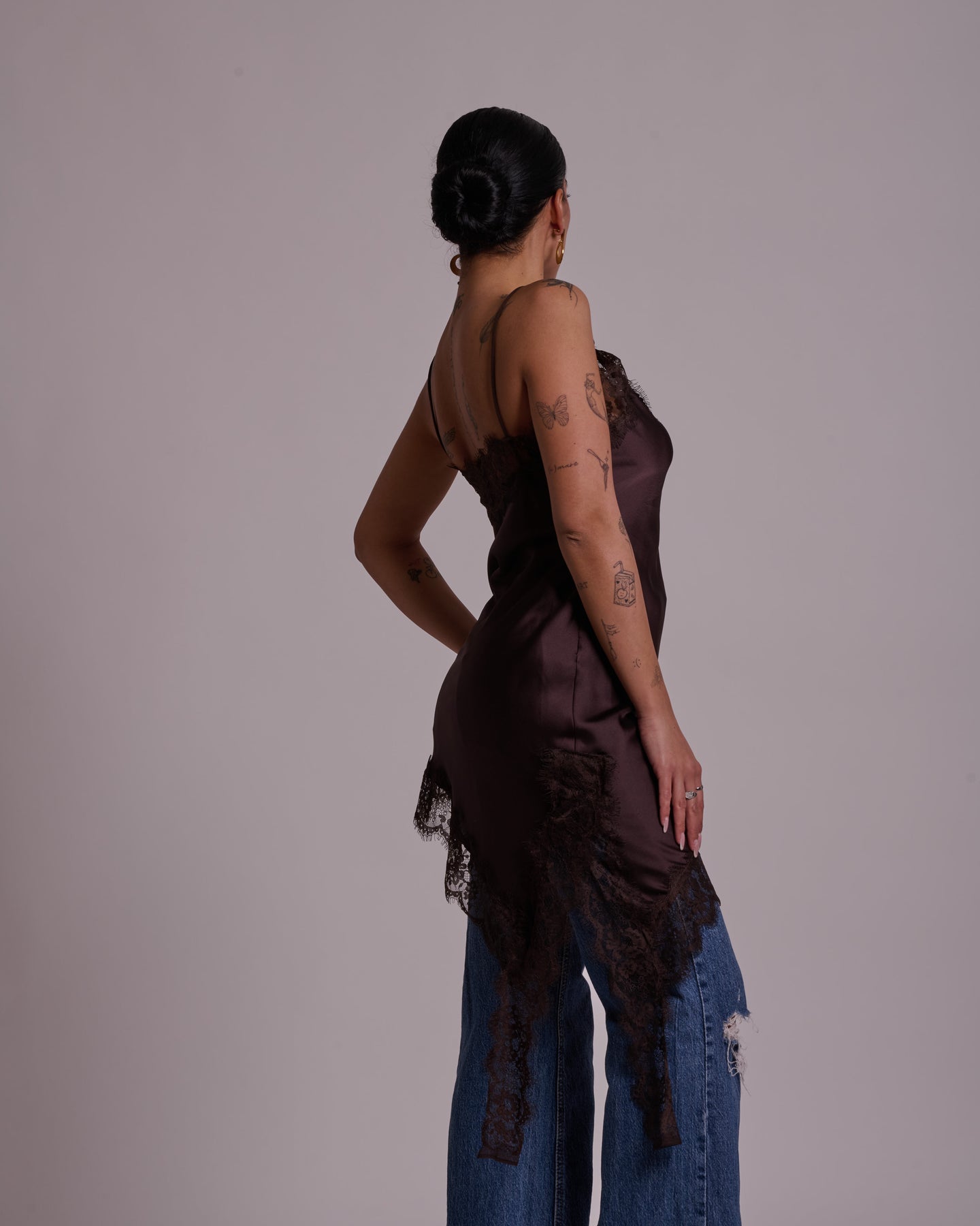 Maglia elegante in raso pregiato con dettagli in pizzo macramè che conferiscono un tocco sofisticato e ricercato. Il tessuto fluido e luminoso della seta sintetica si abbina perfettamente alla delicatezza del macramè, creando un capo versatile ideale per occasioni speciali o per elevare il vostro stile quotidiano. La combinazione di materiali nobili garantisce comfort e una silhouette raffinata. Un pezzo essenziale per chi apprezza i dettagli artigianali e la qualità costruttiva.