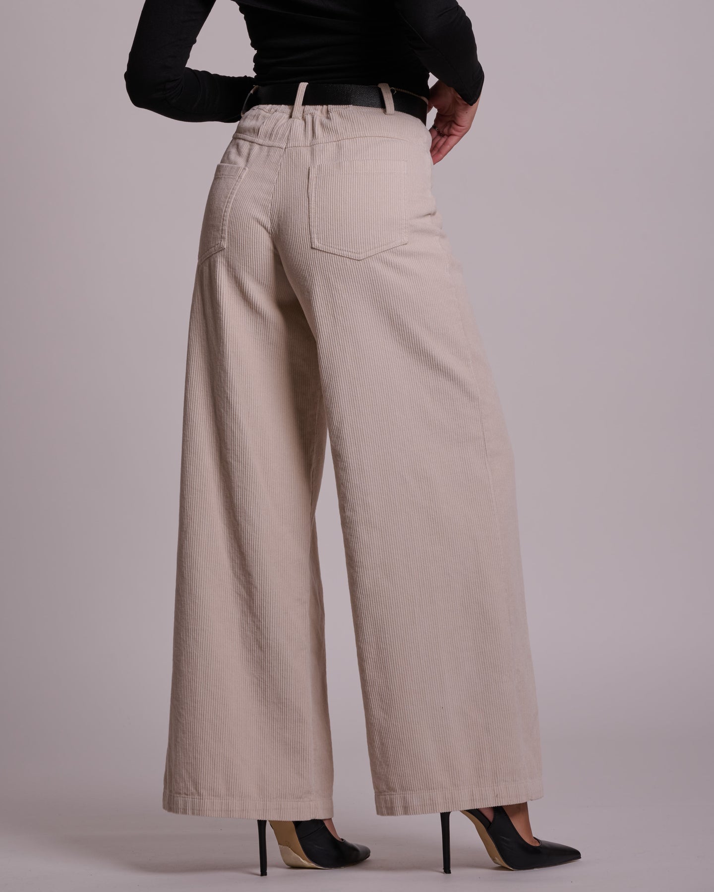 Pantalone in velluto con cintura coordinata, realizzato in tessuto morbido e versatile. La texture vellutata conferisce eleganza e comfort, perfetto per creare look sofisticati sia in occasioni formali che casual. La cintura integrata definisce la silhouette e aggiunge un dettaglio di stile. Ideale per chi ricerca capi di qualità che uniscono praticità e raffinatezza estetica.